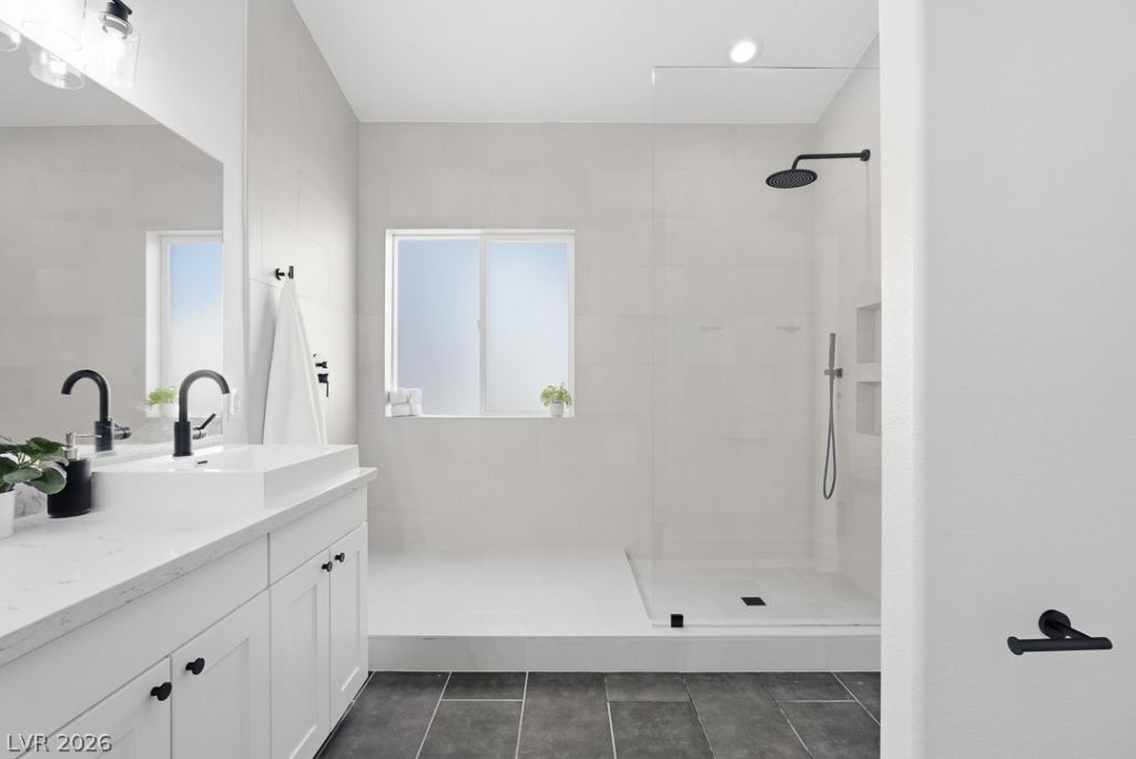 Overlooking a PEACEFUL PARK from a quiet CUL-DE-SAC in Premium Summerlin, this refreshed SINGLE-STORY home IMPRESSES. Featuring 4 BEDROOMS & a RARE 3-CAR GARAGE, the home opens to EXPANSIVE VAULTED CEILINGS & a bright layout designed for everyday living & entertaining. Upon entry, you're greeted by a CUSTOM 72-BOTTLE WINE FEATURE set against a striking WHITEWASHED STONE BACKDROP. The living room is anchored by a DASHING BLACK SHIPLAP ACCENT WALL integrated w a GLOWING LED FIREPLACE. The kitchen showcases WHITE SHAKER CABINETRY & a CENTRAL ISLAND perfect for gathering, while a 9-FOOT SLIDING GLASS DOOR creates seamless INDOOR-OUTDOOR LIVING opening to a backyard retreat w a NEW HOT TUB & OUTDOOR TV ready for quiet evenings under the desert sunset. Just beyond sits a DEDICATED THEATER ROOM w a 100 TV & POPCORN MACHINE. The PRIMARY SUITE features DUAL VANITIES & a SHOWPIECE WALK-IN SHOWER w CUSTOM GLASS & an INTEGRATED DRYING DECK. A HOME built for EVERY FAMILY'S DREAMS.
