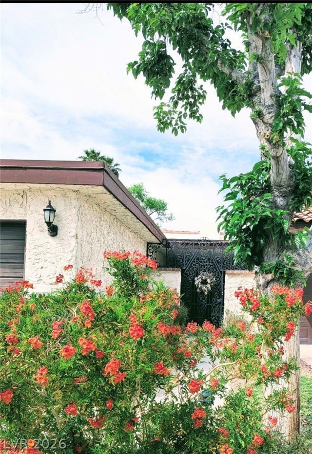 Gated community, tucked in charming area, easy access from Eastern Ave/Pecos corridors. Shops, minutes to Strip & International LV airport. Sunrise Villas~vintage Vegas: shaded paths, well-maintained resort-style grounds, pools, tennis courts. Lounge & entertain on your patio-breathtaking sunsets. Spacious living room: vaulted ceilings, flows to designated dining (fit any size table/buffet). Kitchen updates~style & functionality: semi-custom cabinetry, granite counters, all appliances included. Gated courtyard entry extends living space. Primary en-suite: large easy access shower (grab bars for support) and oversized slider to enclosed courtyard (could be a separate entrance for the late nights or impressive office/creative space). Rear retreat suite- door to 2nd bath-tub/shower combo. Oversized center bedroom: skylight. Full 2-car garage (20x24) & driveway. Wide halls & doorways for easy access! No steps! Shuffle, roll or cha-cha in your primary or second home hide-away